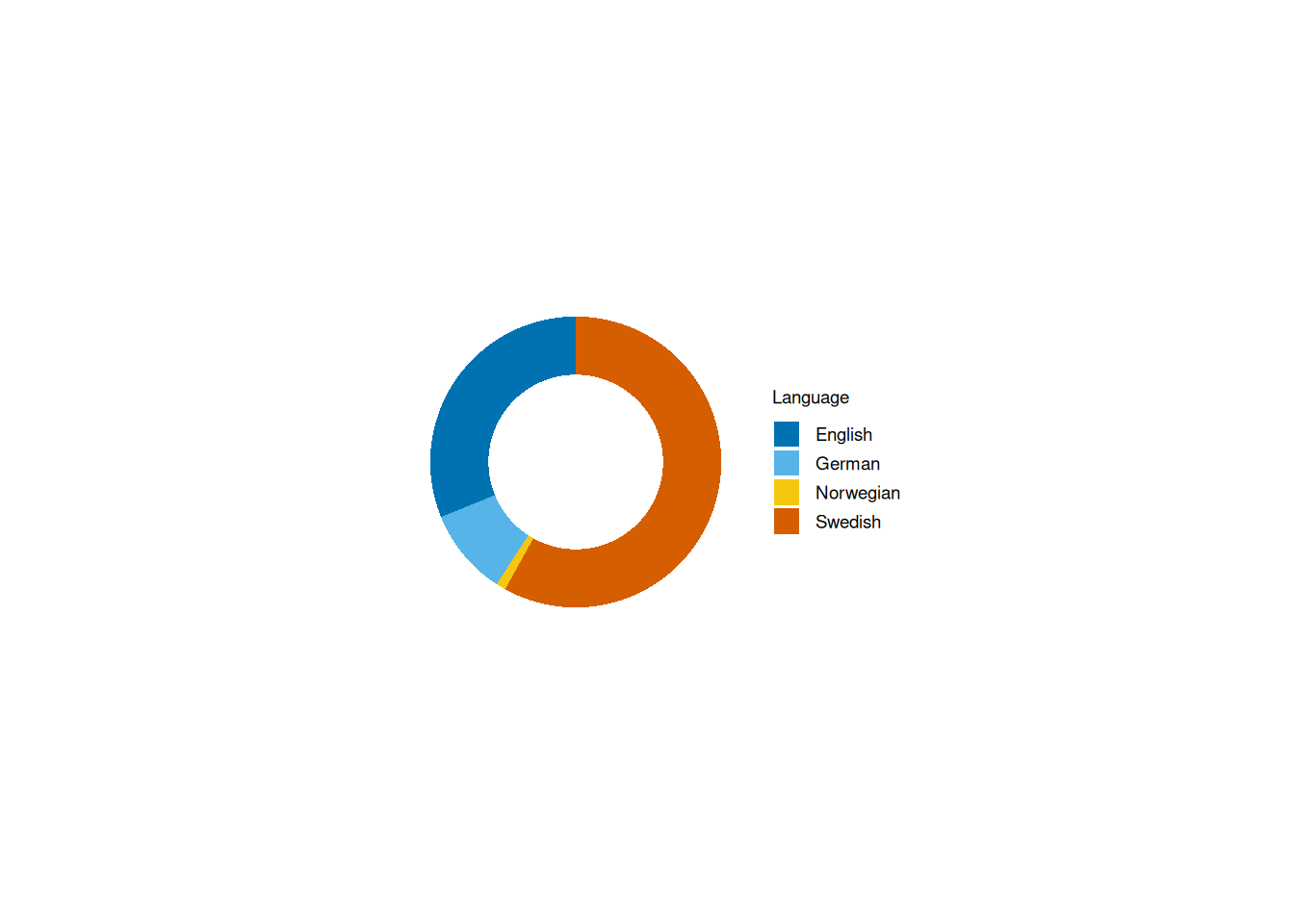 If we want to visualize the same data using doughnut charts, we can create a facetted doughnut plot by language using split_plot():